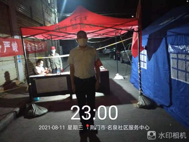 8月4日,荊門出現(xiàn)了第一例新冠肺炎確診病例,一場沒有硝煙的疫情防控阻擊戰(zhàn)便打響。領(lǐng)威保安公司黨員干部總經(jīng)理劉道軍、運(yùn)營總監(jiān)李開軍、郭旭等同志利用休假時間迅速行動,主動向各自居住地所在社區(qū)報到,與社區(qū)工作人員并肩作戰(zhàn)。他們不分晝夜地協(xié)助社區(qū)人員做好卡口值守、核酸檢測、重點(diǎn)群體排查、人員登記、防控知識宣傳,為社區(qū)分擔(dān)壓力、解決實際問題,做好后勤保障,在疫情防控一線站前頭、做表率,為筑牢疫情防控安全屏障貢獻(xiàn)出自己的力量。