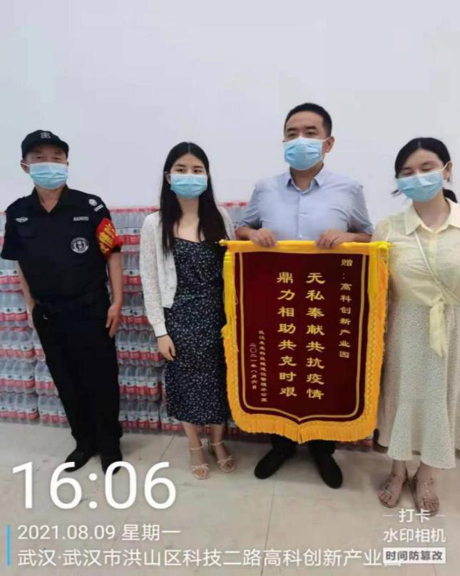 8月9日,武漢未來科技城建設(shè)管理辦公室為了對我司隊員辛勤付出表示感謝,特將一面寫有“無私奉獻(xiàn)共抗疫情,鼎力相助共克時艱”的錦旗送到我們隊員手中。