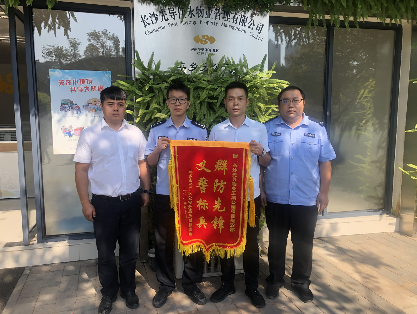 2019年10月22日上午10時20分,江西省萍鄉(xiāng)市玉湖公園鑼鼓聲聲。萍鄉(xiāng)市公安局開發(fā)區(qū)分局玉湖派出所黃曉宇副所長一行,來到玉湖公園服務(wù)中心,給領(lǐng)威保安駐玉湖公園中隊送來錦旗。
