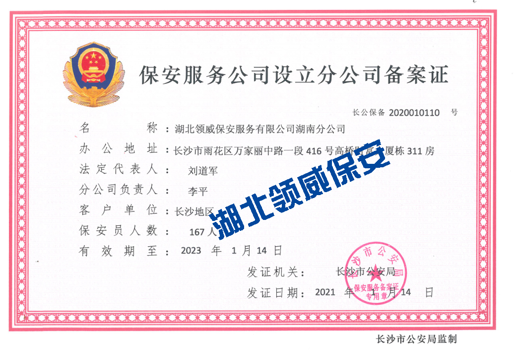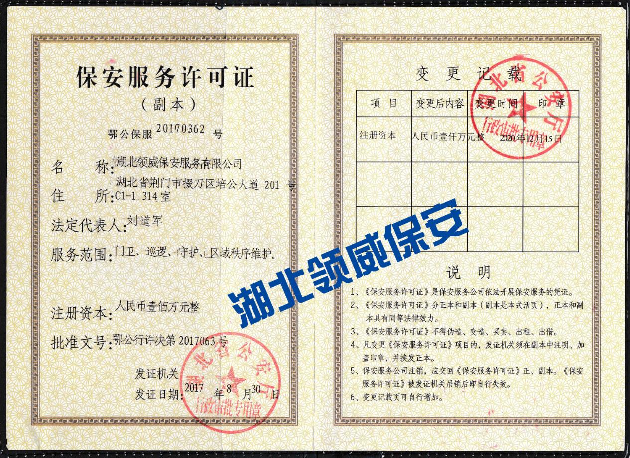 湖北領威保安服務有限公司專注荊門保安、荊門安保、荊門臨保、荊門秩序維護等服務